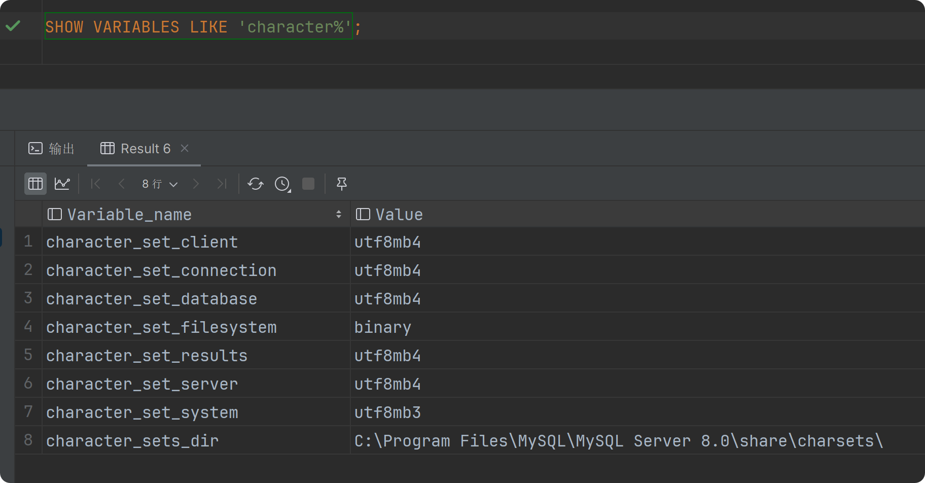 MySQL8.0默认的字符集编码是 utf8mb4 ,MySQL5.7默认的字符集是 latin1